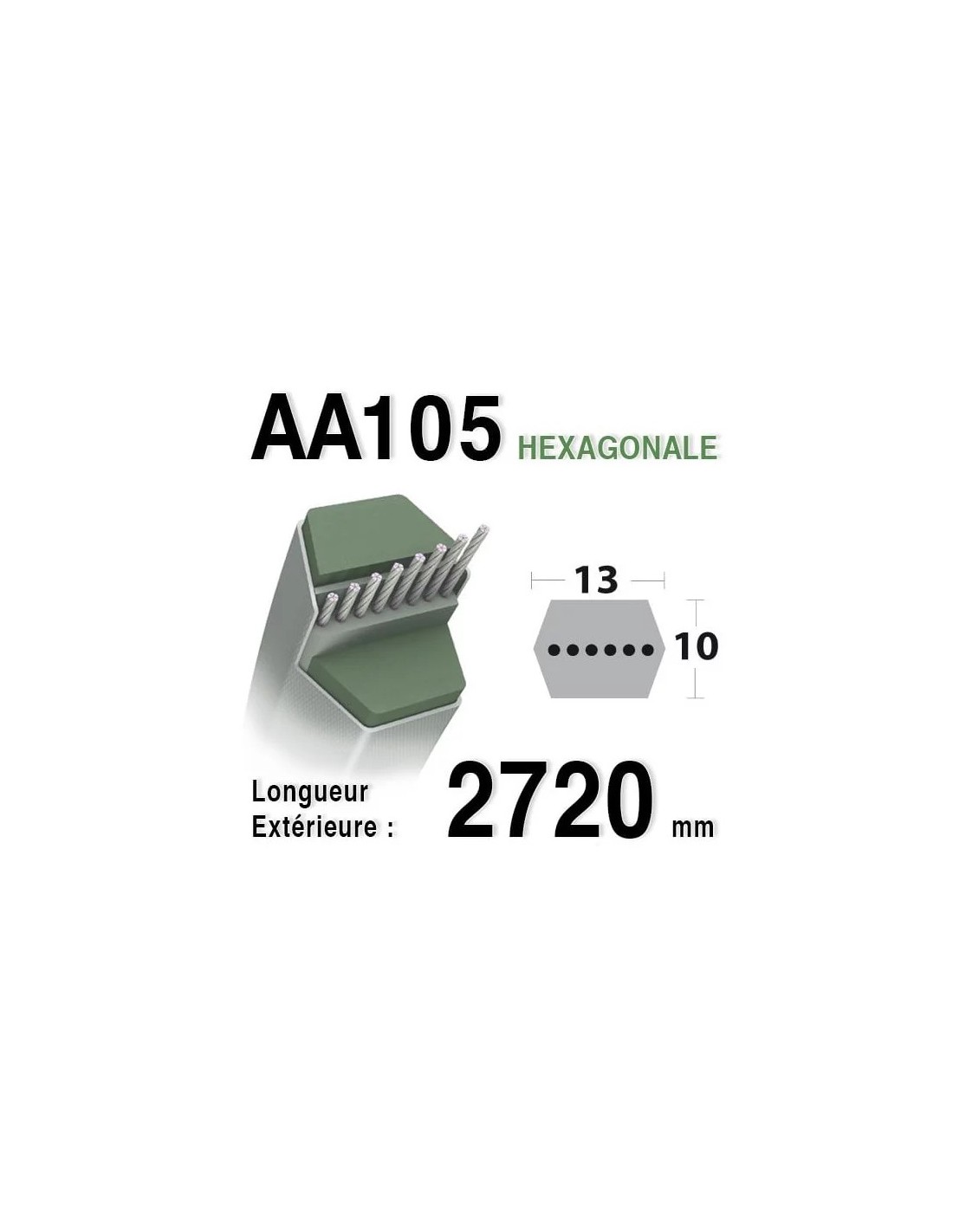La courroie AA105 est une courroie trapézoïdale renforcée, spécialement conçue pour les tondeuses autoportées Husqvarna, AYP et Bernard Loisirs. Elle remplace parfaitement les références constructeur 532165555, 532180217, 165555 et 180217.